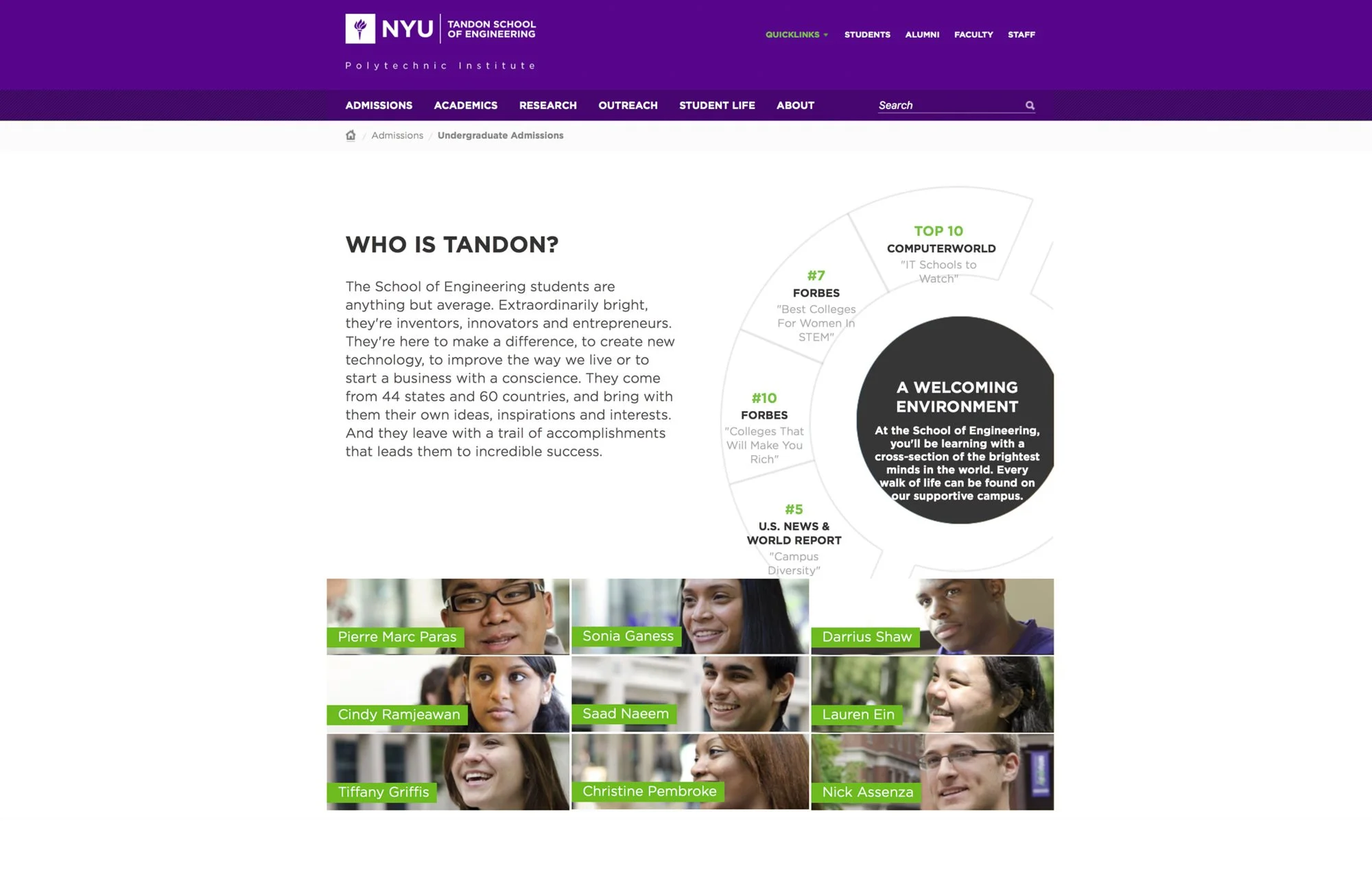Still Photography for use in printed undergraduate admissions materials and online at nyu.edu.